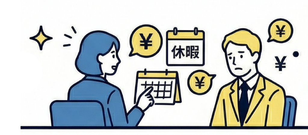✖ 待遇・休みばかり聞く